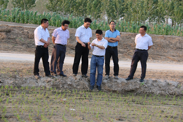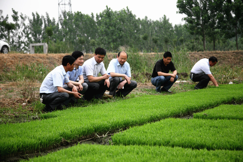 姜建友一行實地查看了旱整水栽栽插稻、農科所擺栽田、大華種業濱淮分公司、七大隊在田水稻長勢等現場。在場期間,姜總裁詳細了解濱淮分公司三夏生產進度,總經理郭世平就大小麥收獲、水稻栽插情況、保種情況等方面工作向姜建友作了匯報。