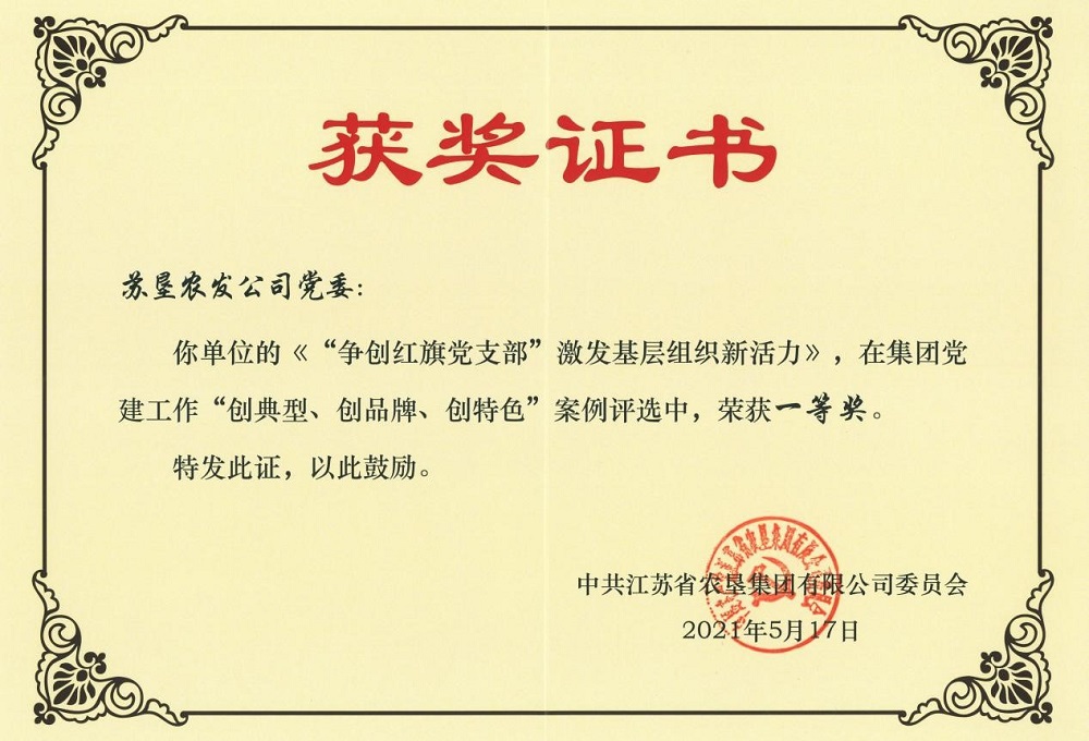 近日,由蘇墾農發黨委報送的《以黨建為引領 以創建為抓手 凝聚推動高質量發展強大動力》榮獲“江蘇省國資系統以高質量黨建引領國企高質量發展100案例”一等獎;《“爭創紅旗黨支部”激發基層組織新活力》在集團黨建工作“創典型、創品牌、創特色”案例評選中榮獲一等獎。這些榮譽的獲得充分肯定了近年來農發公司黨委理論學習中心組學習所取得的積極成效。