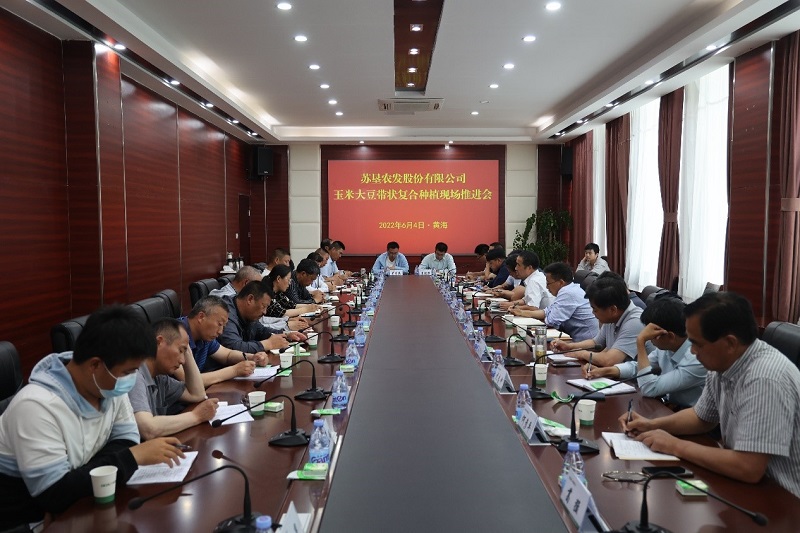 6月4日,蘇墾農發股份公司玉米大豆帶狀復合種植現場推進會在黃海召開。蘇墾農發種植業管理中心總經理徐啟來出席會議并講話,蘇墾農發黃海分公司總經理陳守軍陪同觀摩。東辛、崗埠、云臺、黃海、濱淮、新曹分公司分管副總經理、農業中心主任及農機負責人參加。