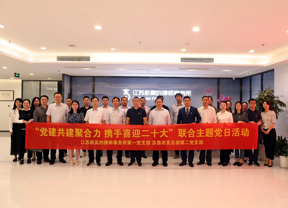 為推進支部黨建與業務工作深度融合,9月22日,蘇墾農發總部第二黨支部與江蘇新高的律師事務所第一黨支部以“黨建共建聚合力 攜手喜迎二十大”為主題,聯合開展主題黨日活動,讓主題黨日活動內容“新”起來、方式“活”起來、黨員“動”起來。雙方支部黨員、發展對象、入黨積極分子參加了活動,公司領導以普通黨員身份參與活動。
